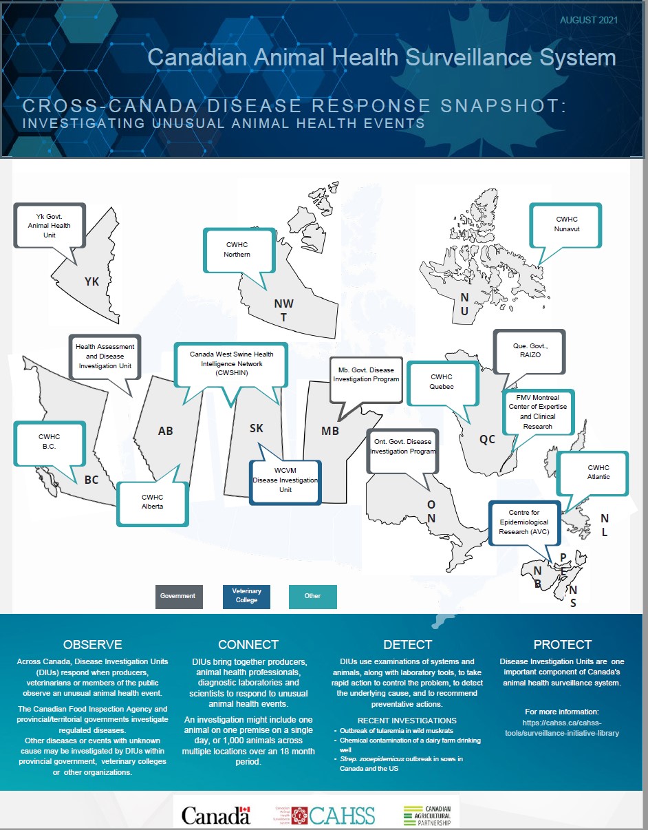 It also includes 'Surveillance Snapshots' - infographics that summarize the Canadian landscape with respect to key areas in animal health surveillance.